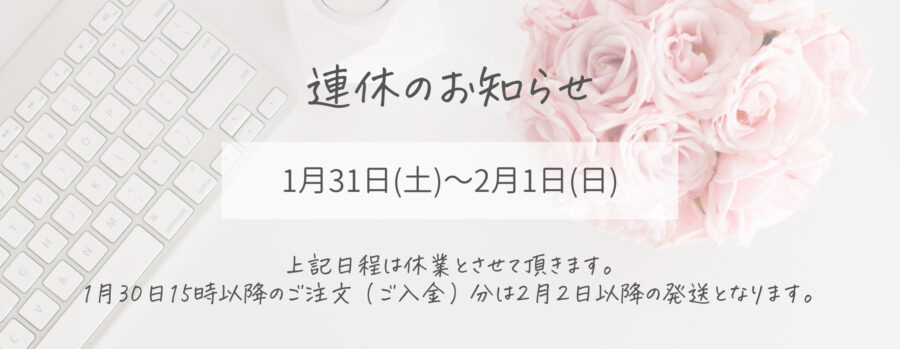 1月連休のお知らせ②[1月31日(土)~2月1日(日)]
